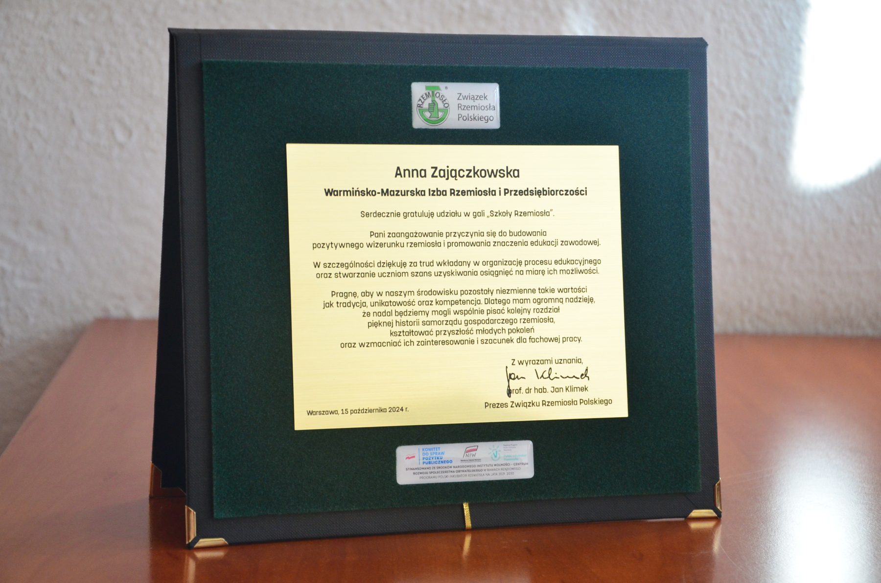 15 października 2024 roku w siedzibie Związku Rzemiosła Polskiego odbyła się pod patronatem honorowym Ministra Edukacji uroczysta gala „Szkoły Rzemiosła”, podczas której 50 przedstawicieli izb rzemieślniczych i branżowych szkół rzemieślniczych odebrało listy gratulacyjne za wybitne osiągnięcia dydaktyczne, wychowawcze i opiekuńcze.