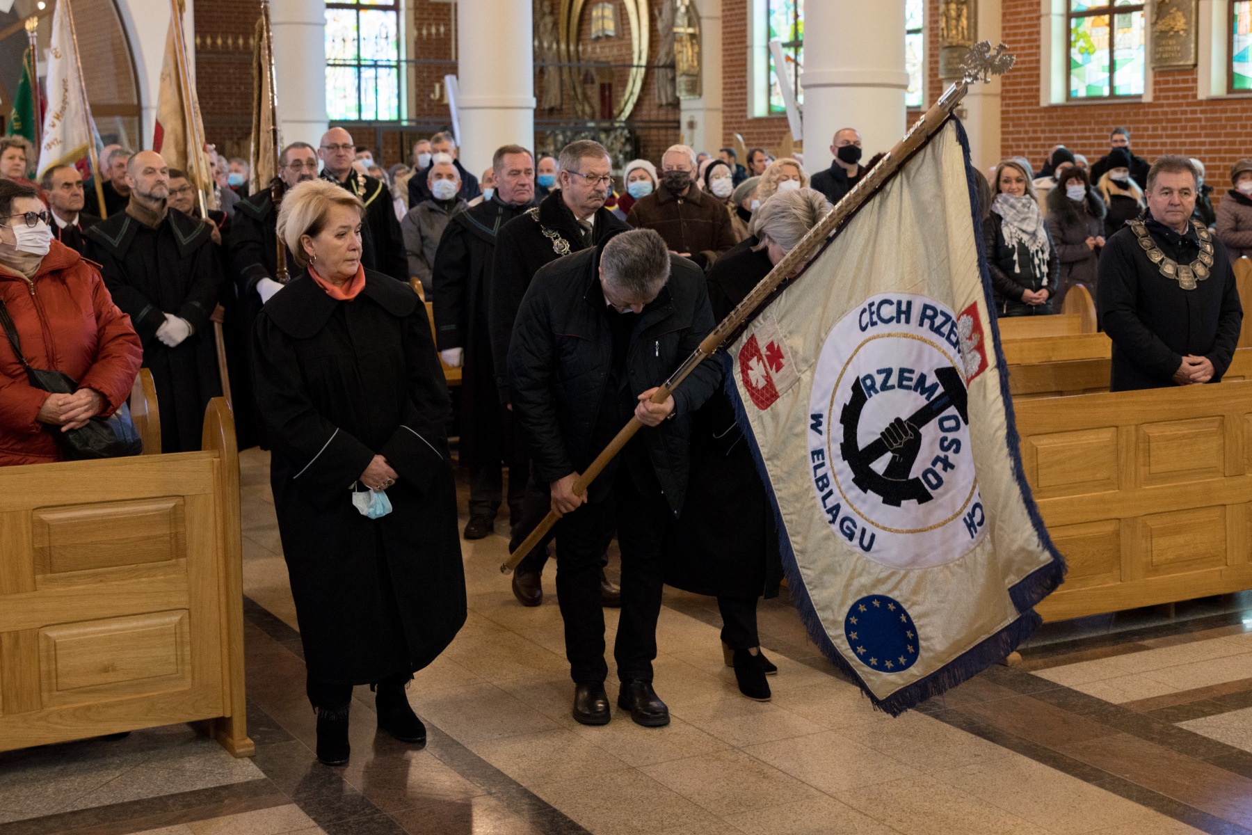 Udział we Mszy wzięli Prezes Izby Adam Przybysz, Wiceprezesi: Piotr Kwiatkowski, Krzysztof Ornowski, Wiesław Gołąb, Sekretarz Prezydium Zdzisław Nowiński, członkowie Zarządu, przedstawiciele Rzemiosła z całego województwa warmińsko – mazurskiego wraz z pocztami sztandarowymi oraz pracownicy Cechów i Izby.