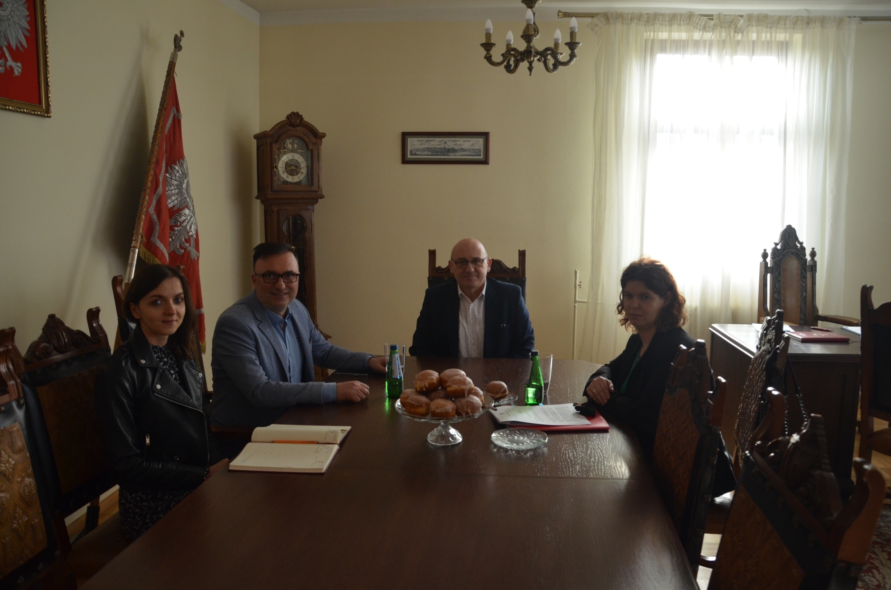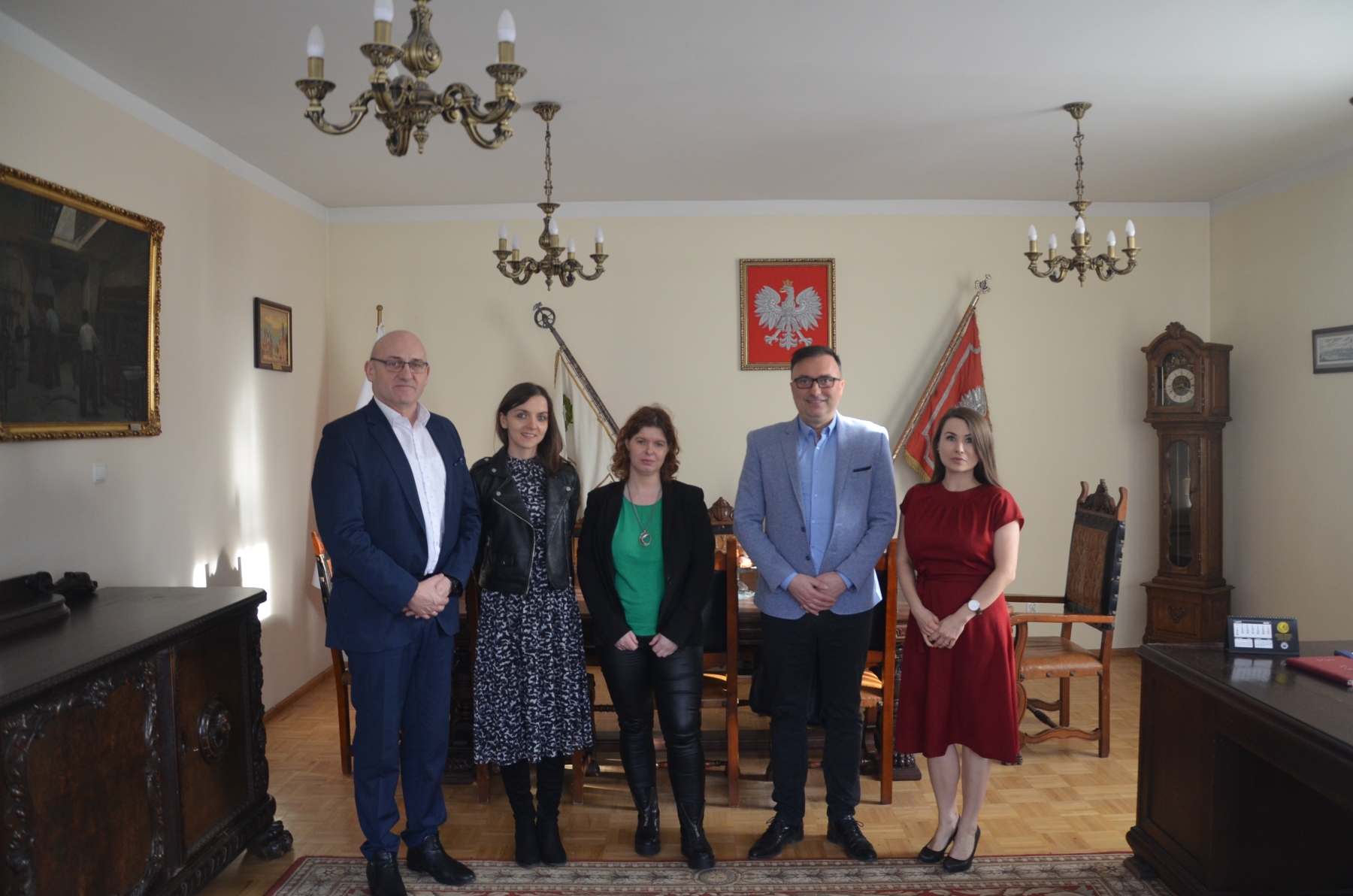Pani Justyna Kaczorek zapoznała zwiedzających się z historią Cechów rzemieślniczych – szczególne zainteresowanie wzbudziły drewniane drzwi wejściowe do sali konferencyjnej, na których umieszczono symbole Cechowe. Następnie goście mogli podziwiać odznaczenia rzemieślnicze umieszczone w gablotach, tablice upamiętniające fundatorów Domu Rzemiosła oraz galerię rzemieślników uhonorowanych najwyższym odznaczeniem – Szablą im. Jana Kilińskiego.